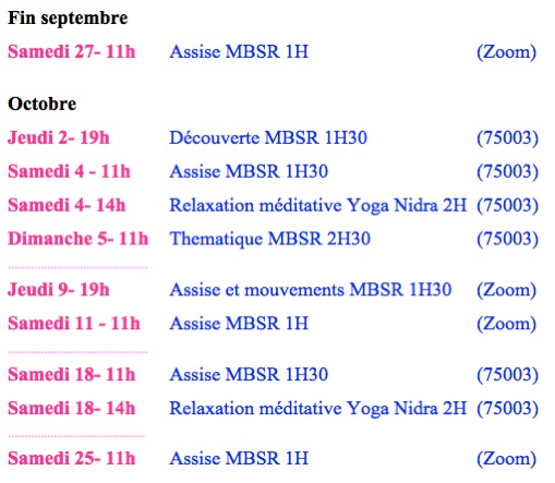 Le programme MBSR «Réduction du Stress» est un engagement sur 9 séances selon un protocole progressif.